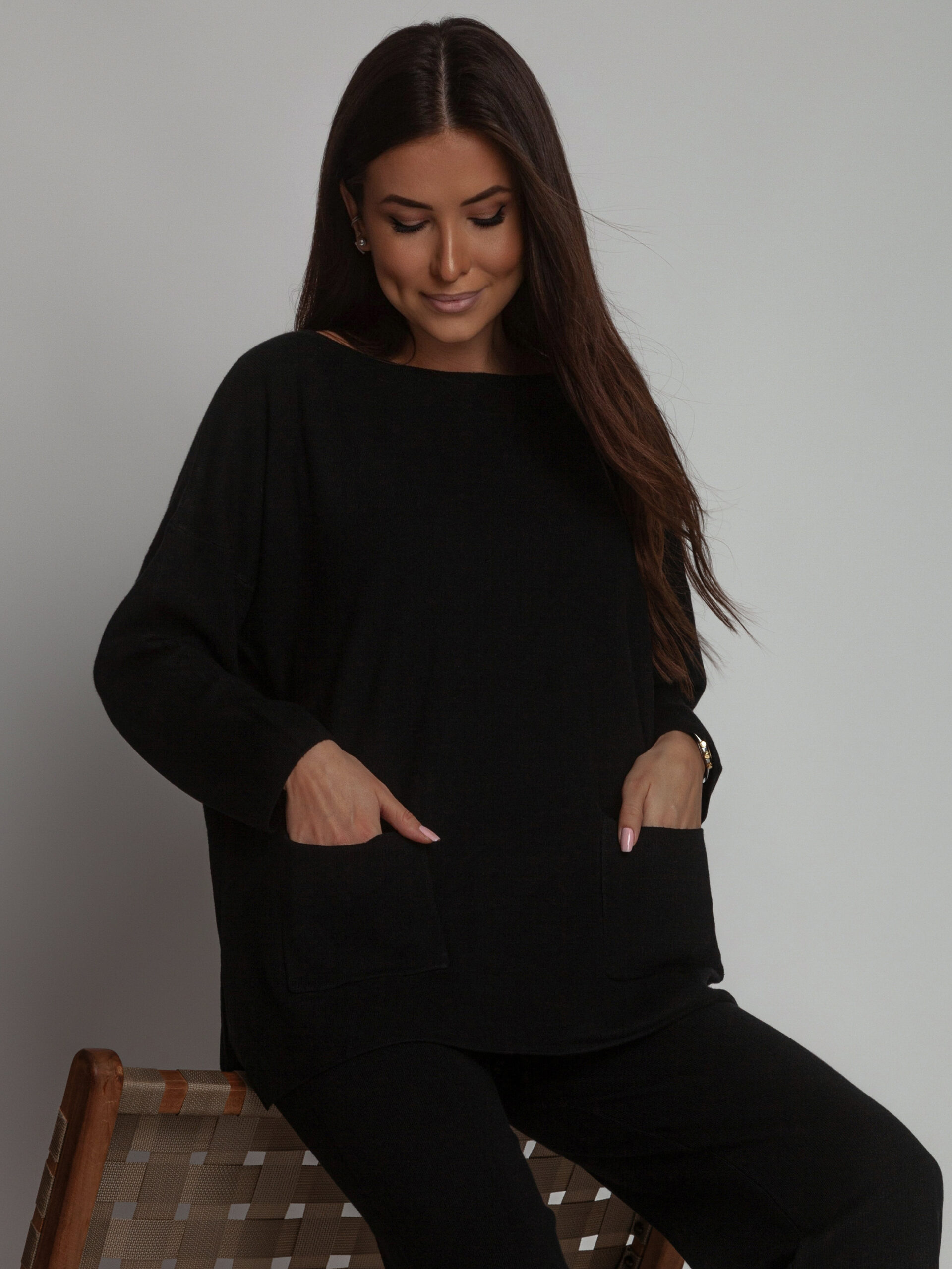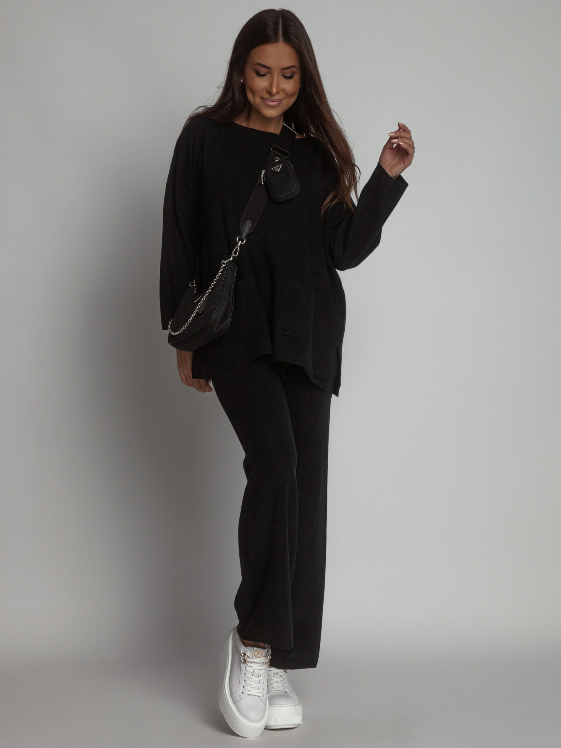 KOMPLET DZIANINOWY SWETERKOWY JOY CZARNY