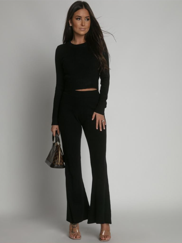 Komplet VIKA, który z pewnością przyciągnie wiele spojrzeń! Zestaw wykonany z niezwykle elastycznego materiału. W zestaw wchodzi krótki, dopasowany prążkowany top, a także spodnie dzwony z luźną nogawką i wysokim stanem. Niezastąpiony dla kobiet ceniących sobie styl i wygodę. Idealna propozycja na sportowy oraz elegancki look!